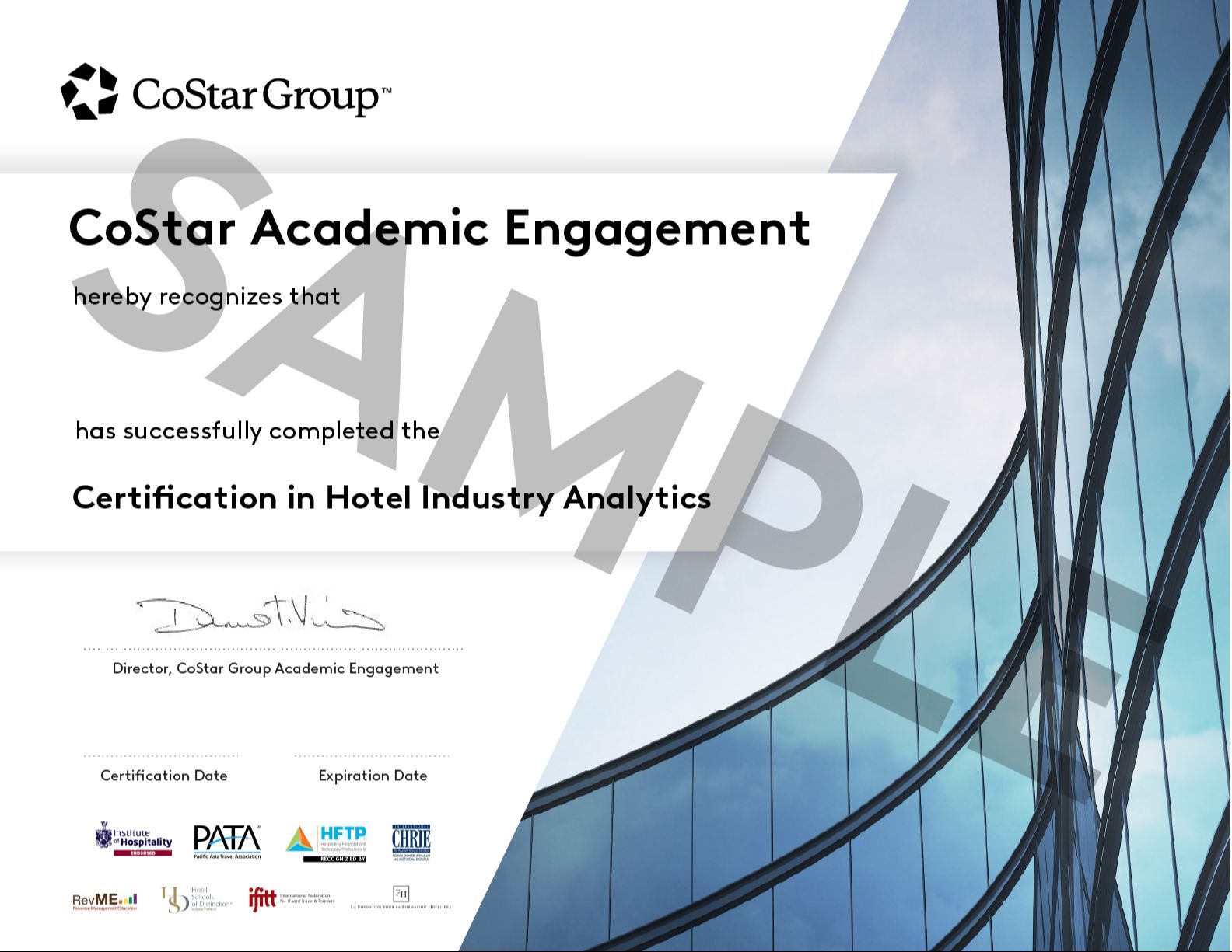 The Certification in Hotel Industry Analytics is the most popular hotel industry certification, obtained by over 42,000 professionals. The online CHIA Recertification training is a unique opportunity to renew your original certification and to learn about all of the exciting new functionality of the CoStar product.